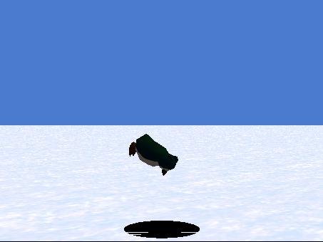 . Papa penguin diving head first into the hole.